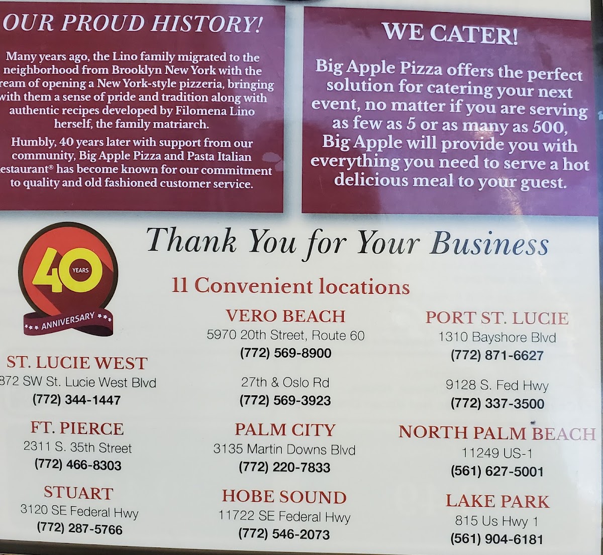 If you’re browsing the Big Apple Pizza & Pasta Menu, come hungry and don’t rush it. Tucked along SE Federal Highway in Stuart, this spot lays out everything you’d hope for from a classic New York-style pizzeria, and then some. The first thing that jumps out is the lineup of oversized, foldable slices and specialty pies loaded with gooey mozzarella and generous toppings. Whether you’re into a simple cheese slice or something piled high with meats and veggies, there’s plenty to explore.